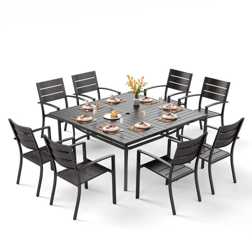 9 Pcs Patio Dining Set Outdoor MetalTable Chair Furniture Set for Garden Yard