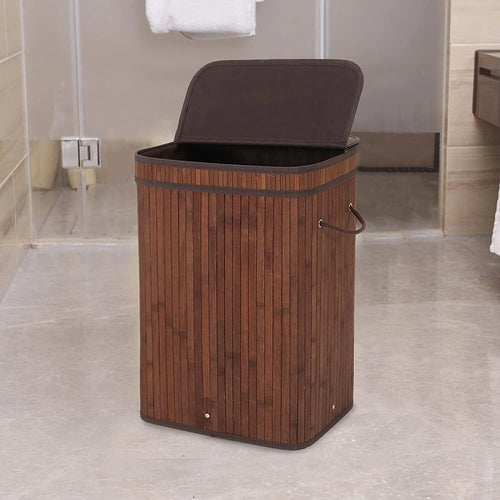 Laundry Hamper with Lid 72L FoldingBamboo Laundry Basket with RemovableLiner